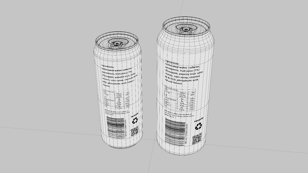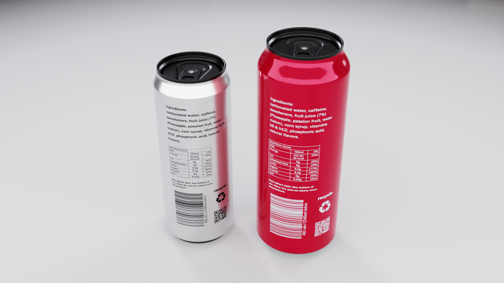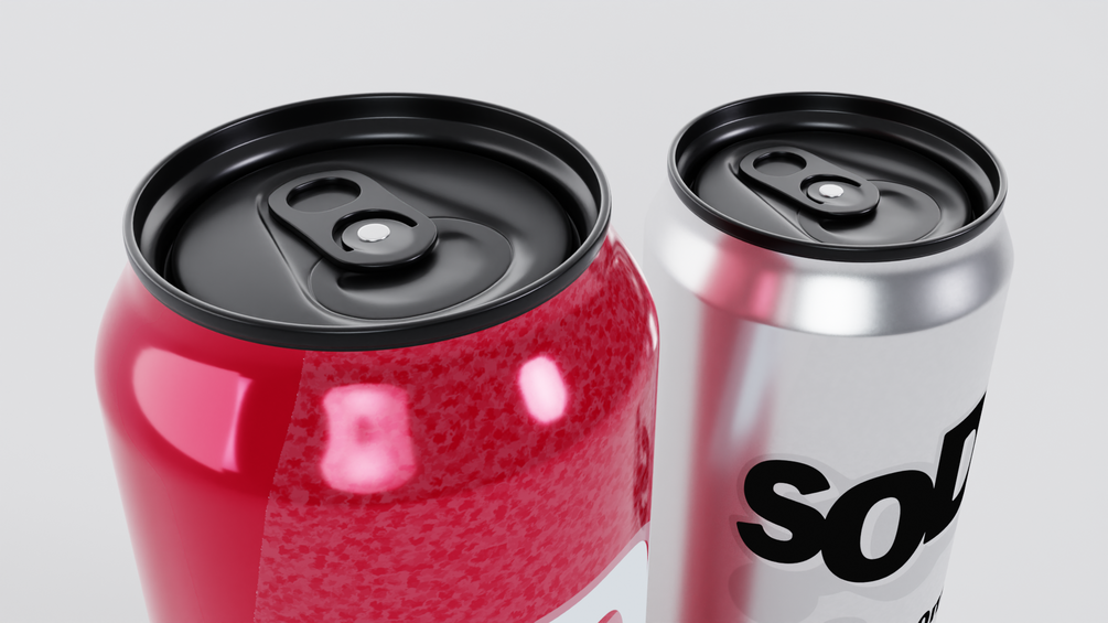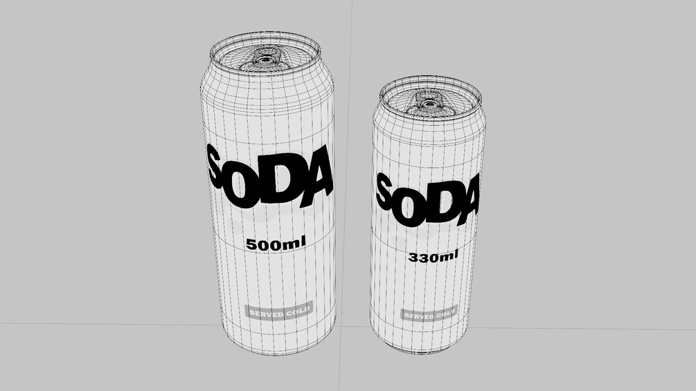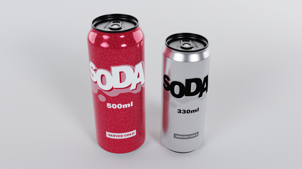 Soda cans 500ml (168x65mm) and 330ml (145x56mm). Comes with intact modifiers in Blender project files.