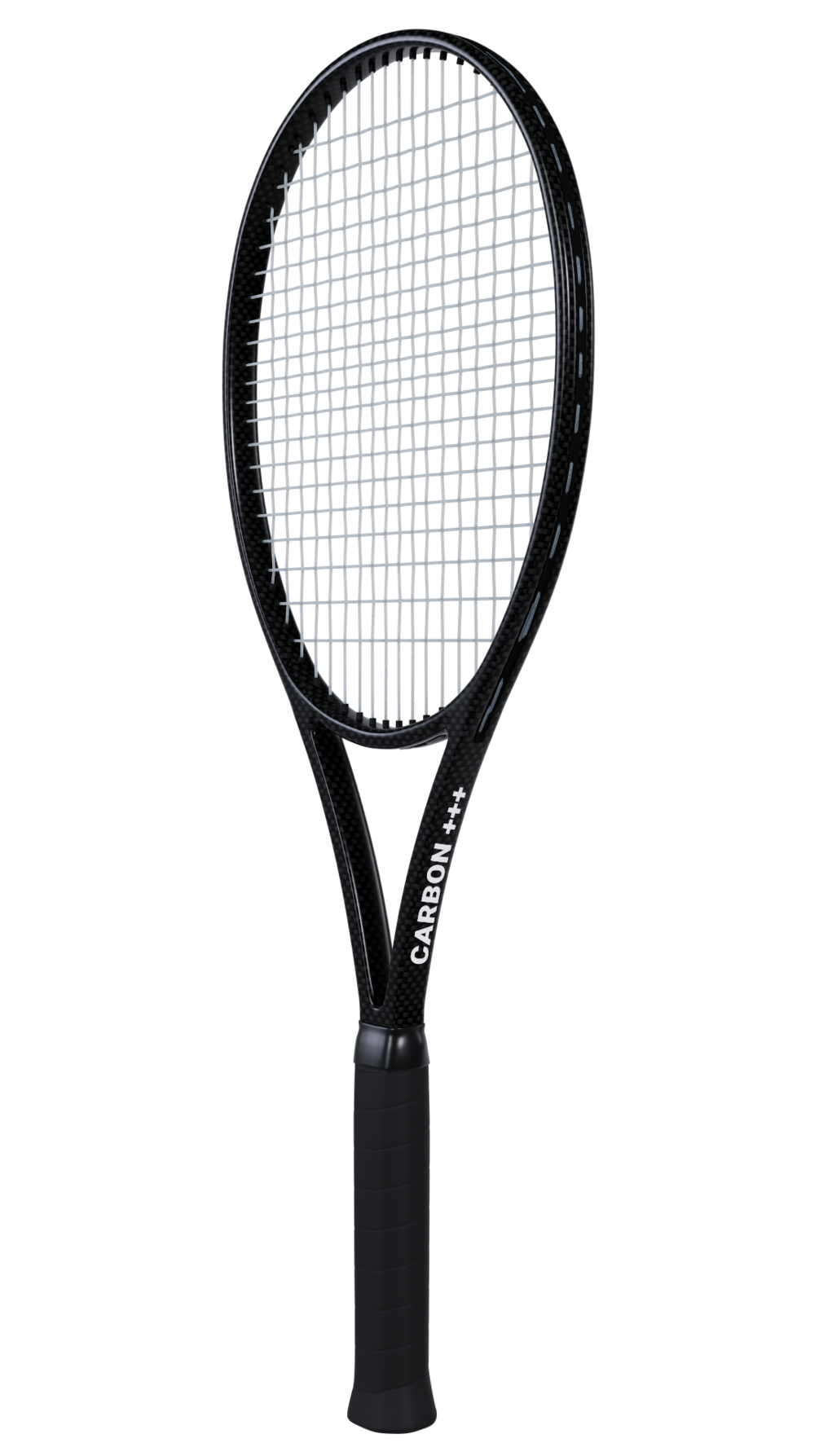 -Textured in black carbon fiber. Racket also comes in three color variations: Red, Green & Yellow.